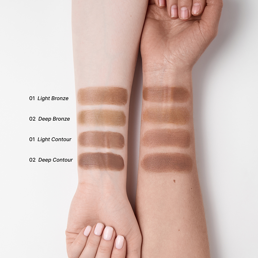 Для более аккуратного и естественного эффекта нанесите небольшое количество продукта на тыльную сторону ладони, слегка разогрейте и нанесите на лицо с помощью плоской кисти для контуринга